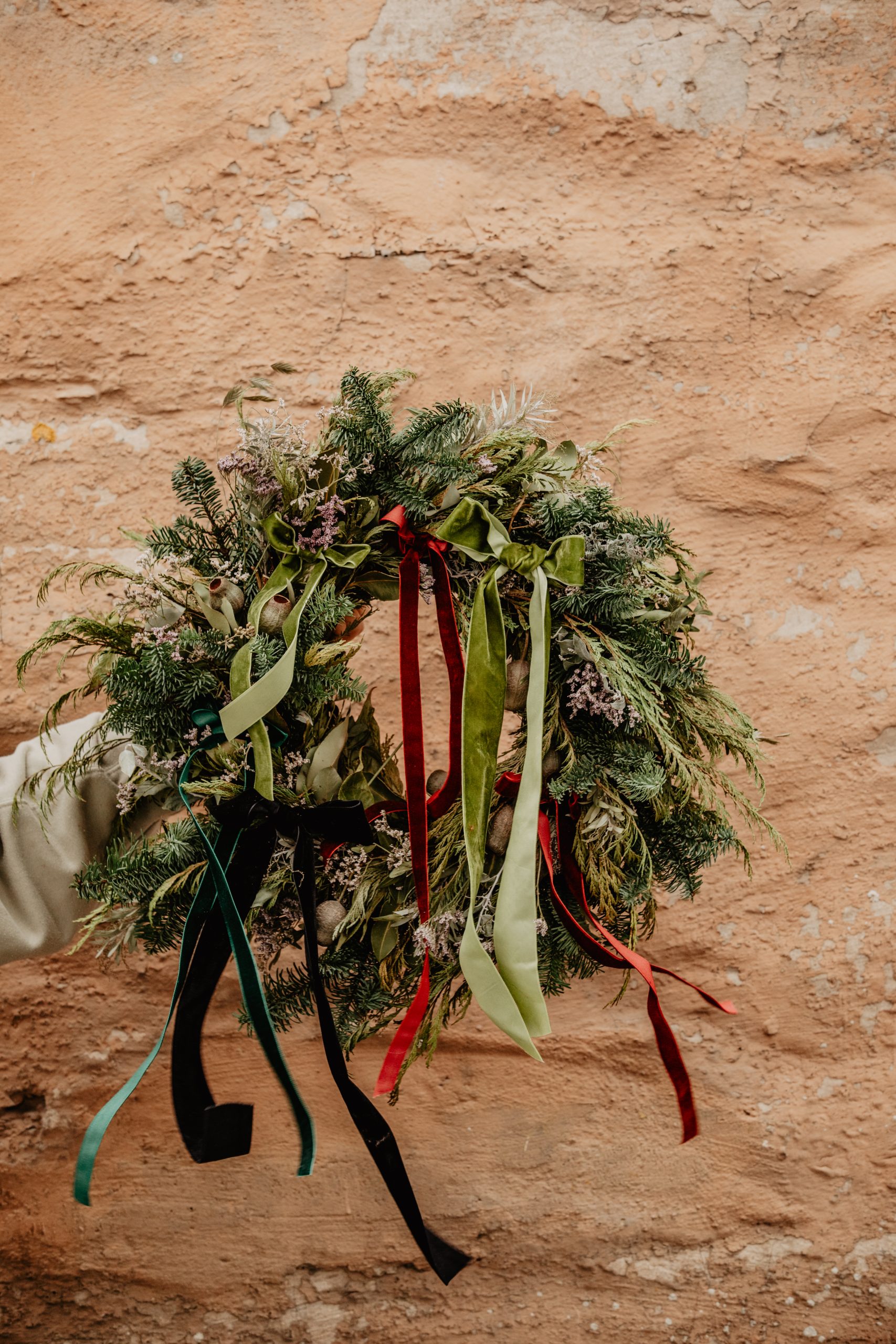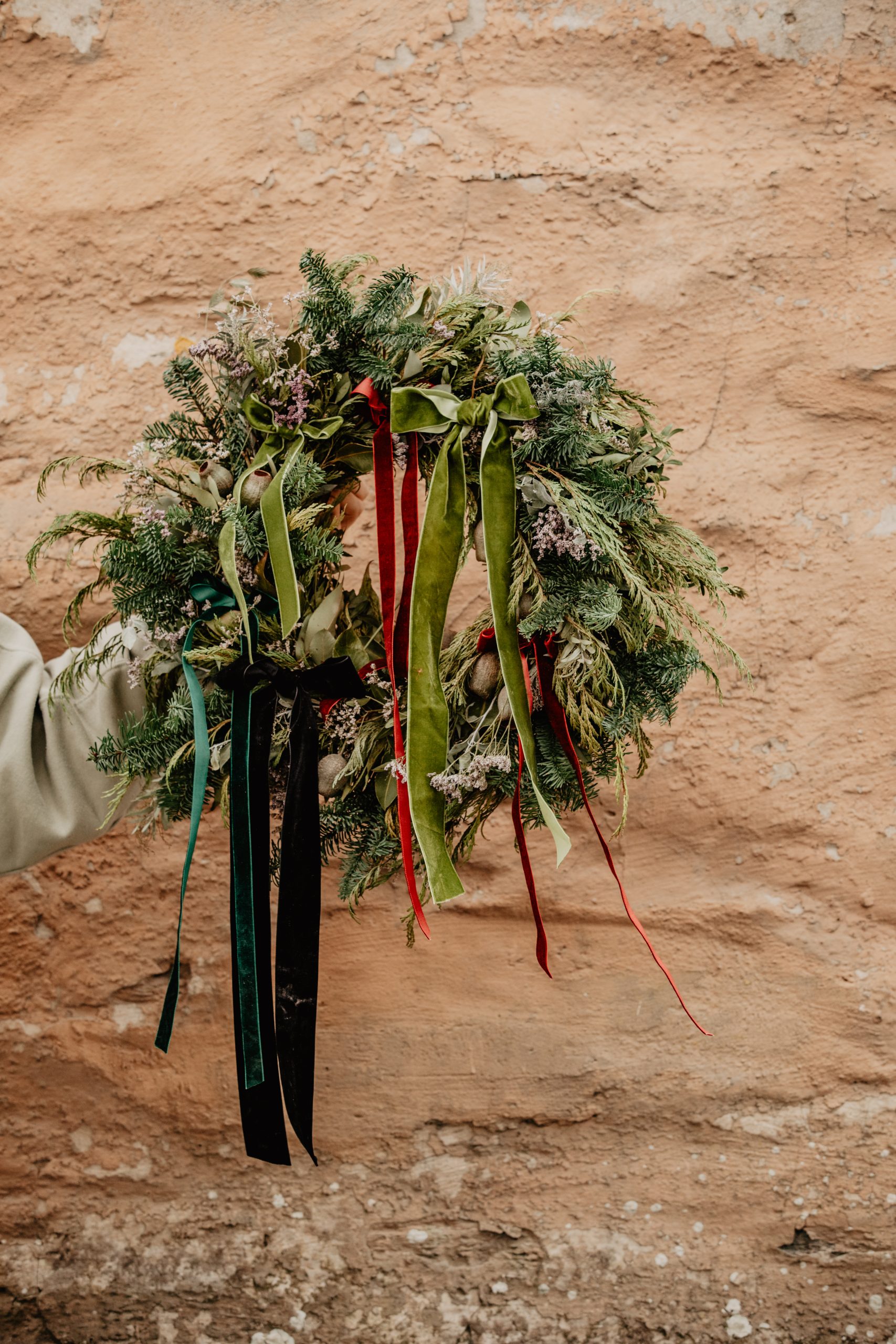 Luxury full foliage wreath with various gorgeous velvet bows to finish, in various sizes. The ‘cool girl’ wreath.